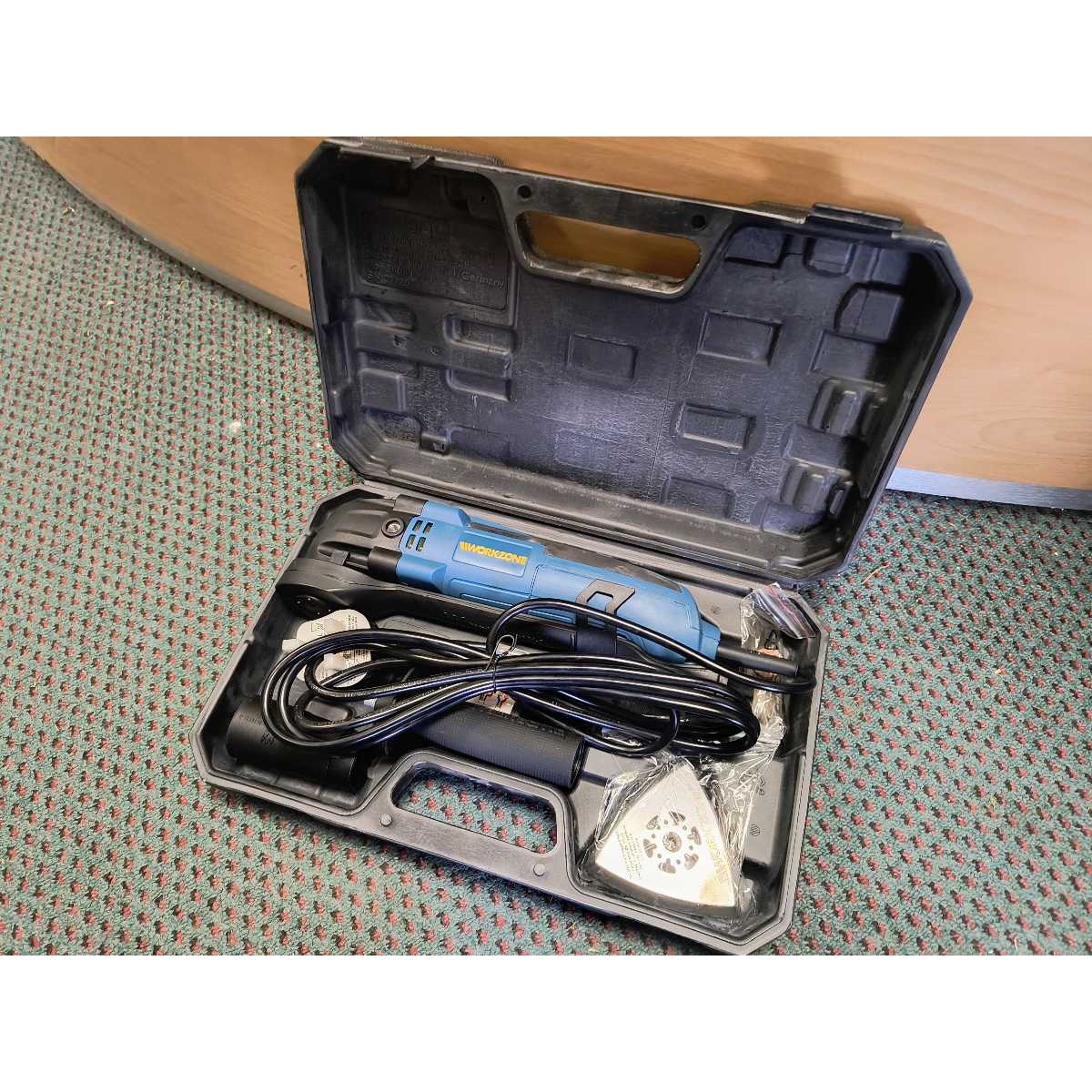 This multi tool is useful in regards of sawing, cutting, scraping and sanding. It is capable of being a universal use tool, ideal for working in hard to reach places. This box comes with 23 accessories included, and non-reusable items such as sanding paper is available individually through the library.