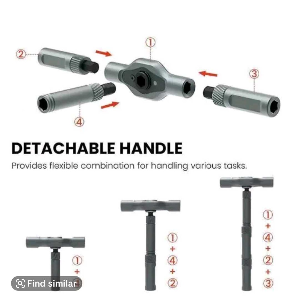 Comes with a n transforming ratchet t shaped bar with removable parts