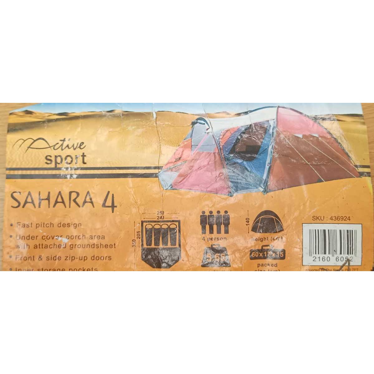 Small 4 man tent 243cm x 205cm sleeping area, would sleep comfortably two to three people with room for camping gear or 2 adults and a child.