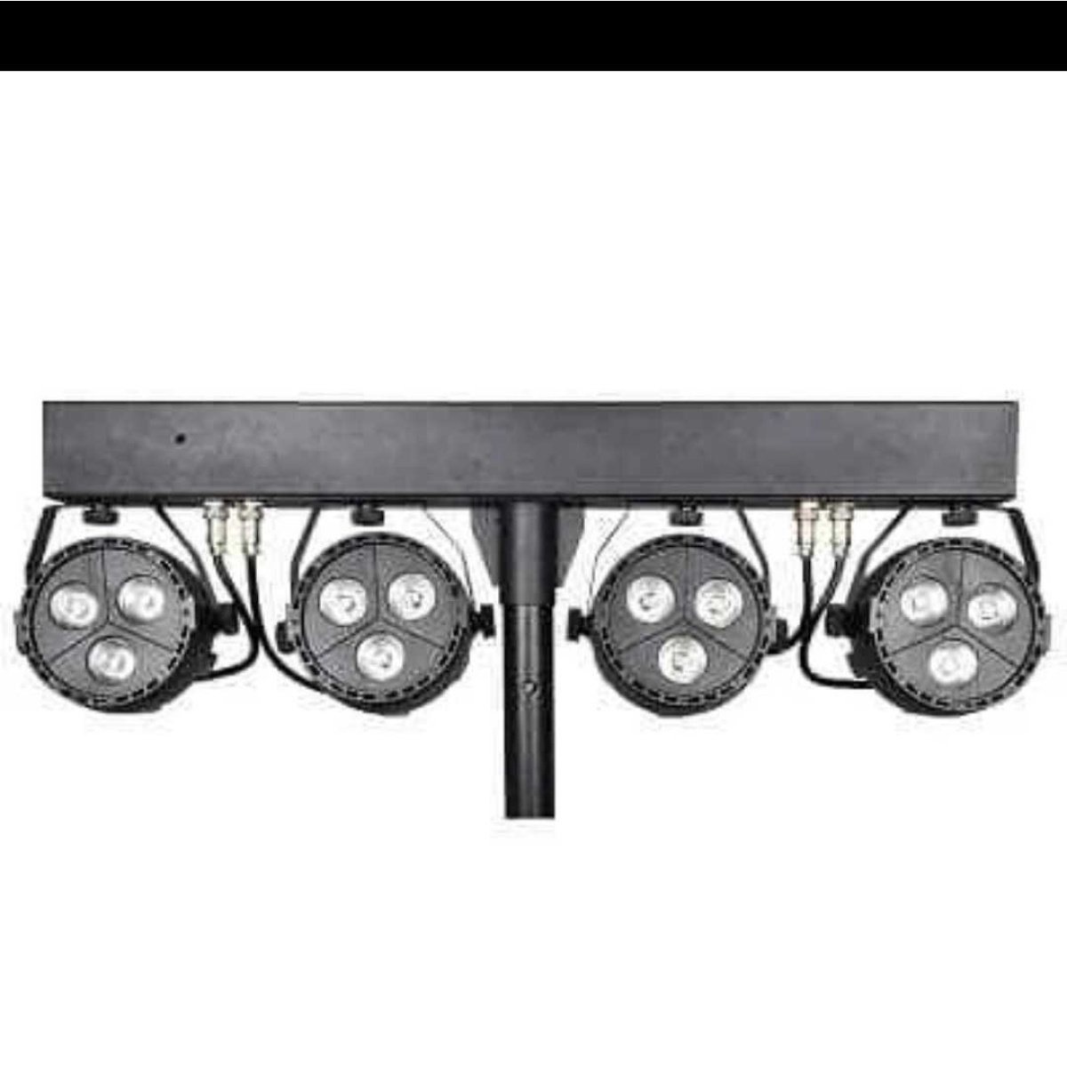 2 RGBW PAR lights + 2 lighting effects, Single IEC mains power input