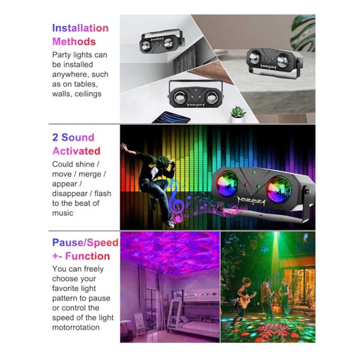 Suitable for parties, events, and ambient room lighting.