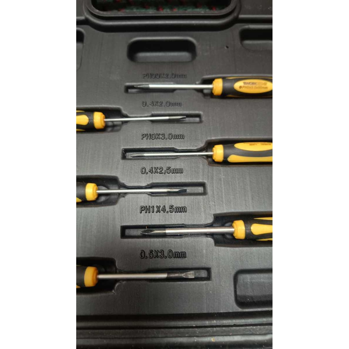 set of screwdrivers containing precision and standard screwdrivers and some bits.