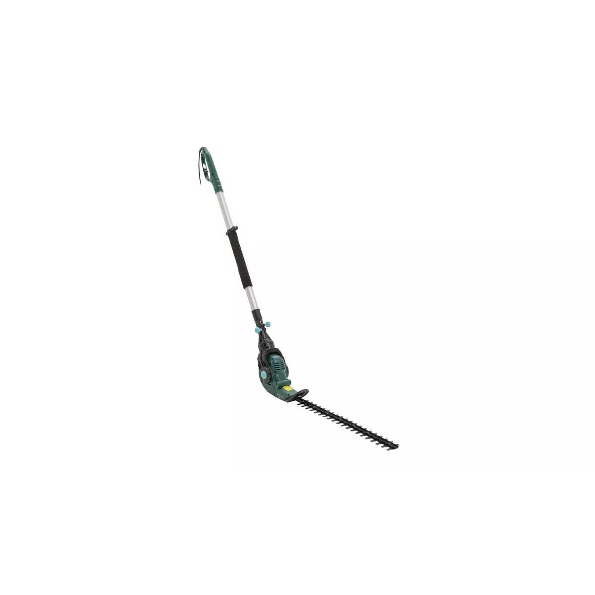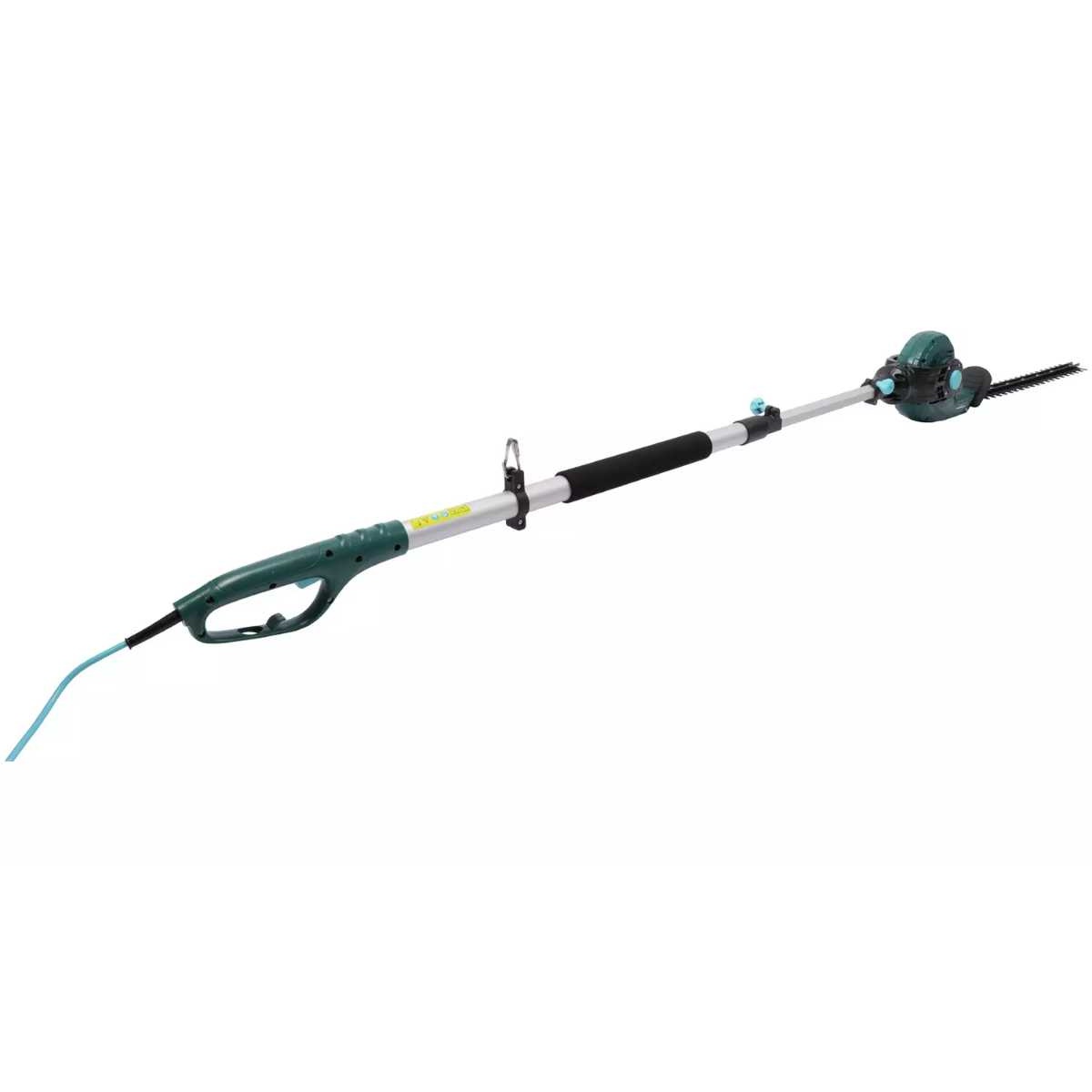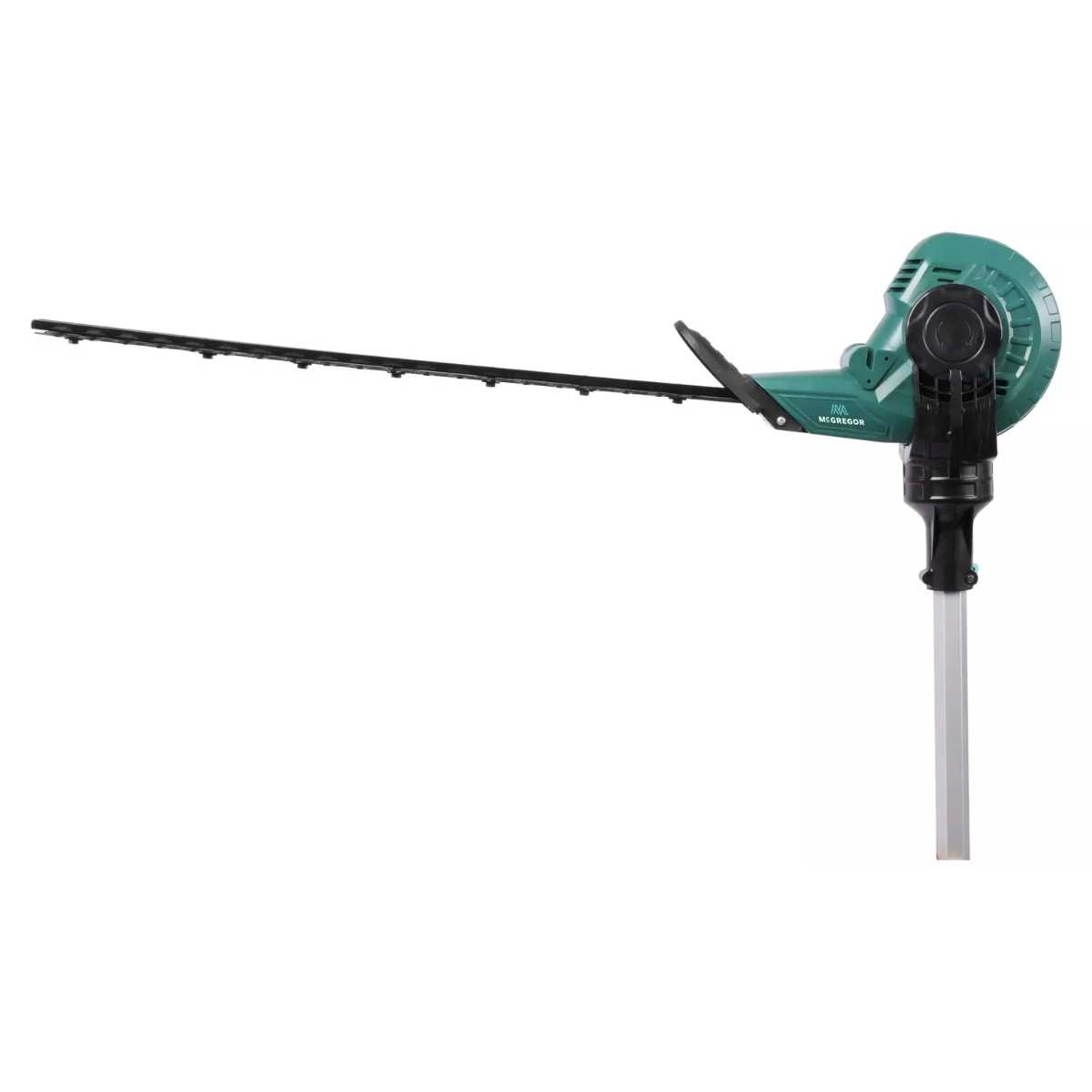 Get your hedges into shape with this McGregor 500w corded pole hedge trimmer. The dual action blades give a fast, clean cut and the telescopic pole extends from 1.9m to 2.5m giving you added reach for the taller hedge. The head can also be set at the optimum cutting angle and comes with a 10m cable.