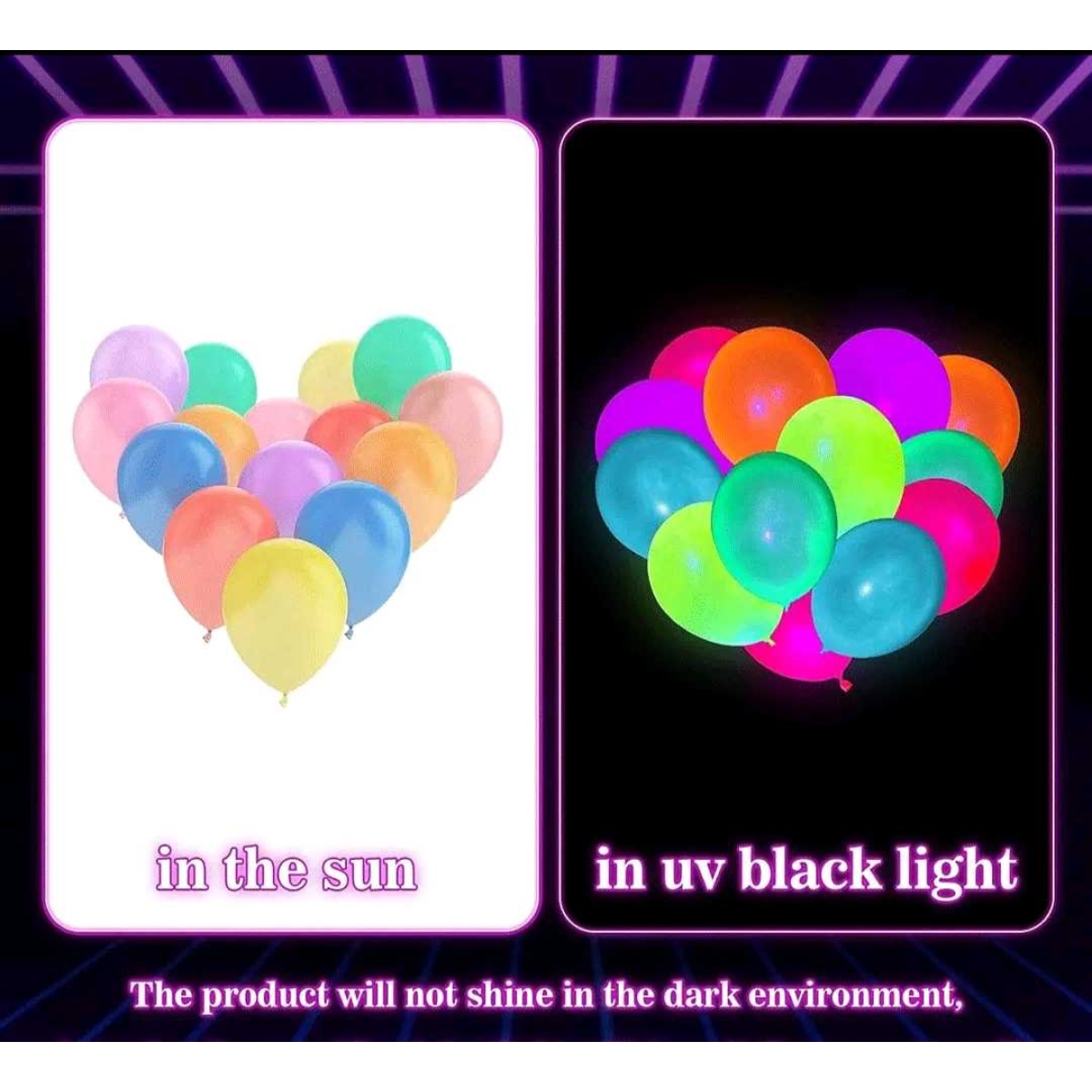 25 UV Reactive Balloons for Parties